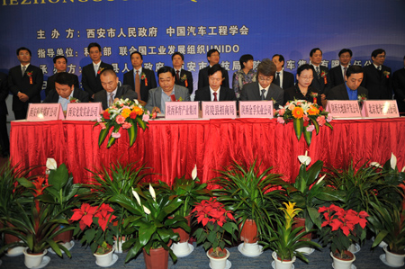 本次論壇由西安市人民政府和中國汽車工程學(xué)會主辦,高陵縣人民政府、西安市科技局及陜西汽車集團有限責(zé)任公司承辦。論壇主題為“統(tǒng)籌科技資源,推動渭北工業(yè)新區(qū)跨越發(fā)展”。高陵縣政府還與中化近代環(huán);ぃㄎ靼玻┯邢薰尽㈥兤率思瘓F、北京光華榮昌汽車零部件有限公司、西安瑞通能源科技有限公司、西安科航煤礦機械設(shè)有限公司等9家企業(yè)簽訂了產(chǎn)業(yè)項目投資協(xié)議,并就涇河工業(yè)園基礎(chǔ)設(shè)施建設(shè)、統(tǒng)籌城鄉(xiāng)等10個重大項目簽訂了戰(zhàn)略合作協(xié)議,合同總投資達(dá)180億元。