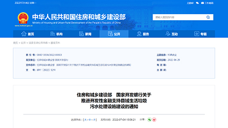 7月4日,住房和城鄉建設部和國家開發銀行發布《關于推進開發性金融支持縣域生活垃圾污水處理設施建設的通……